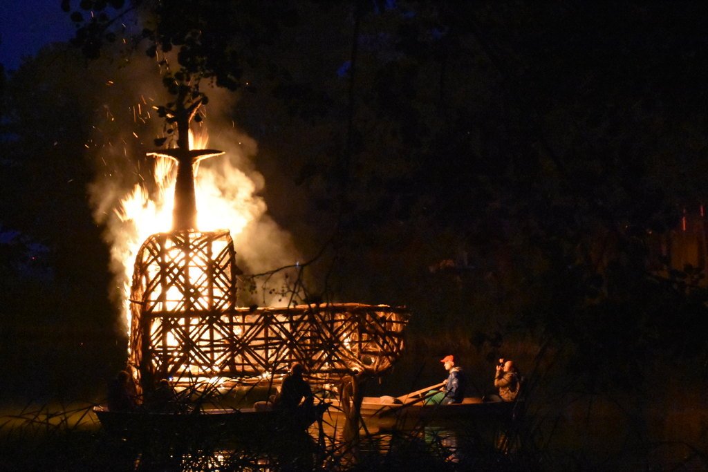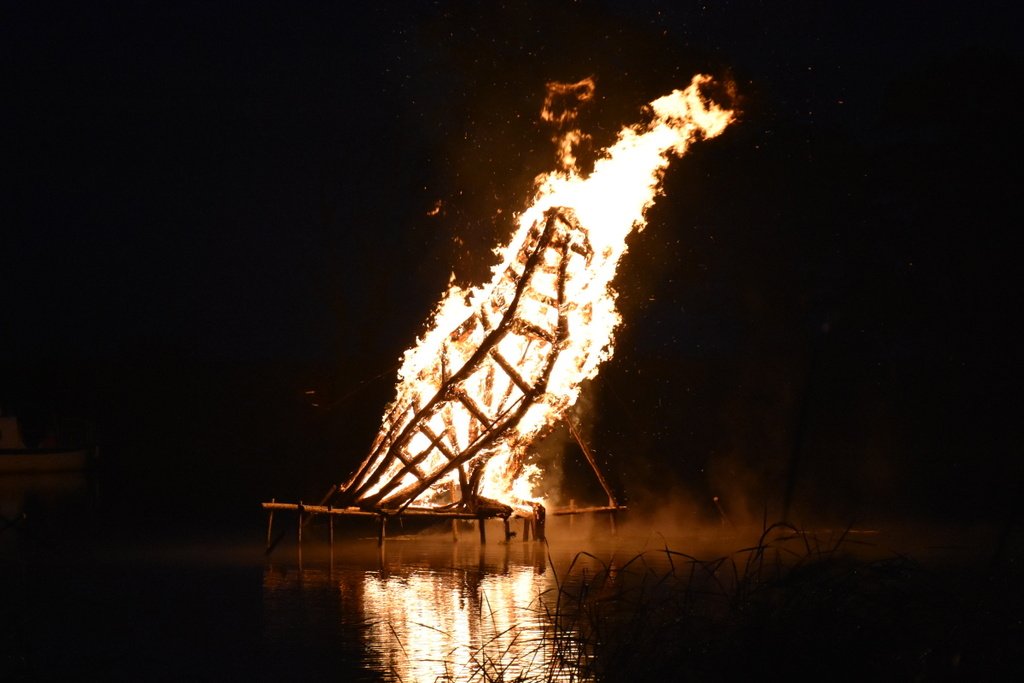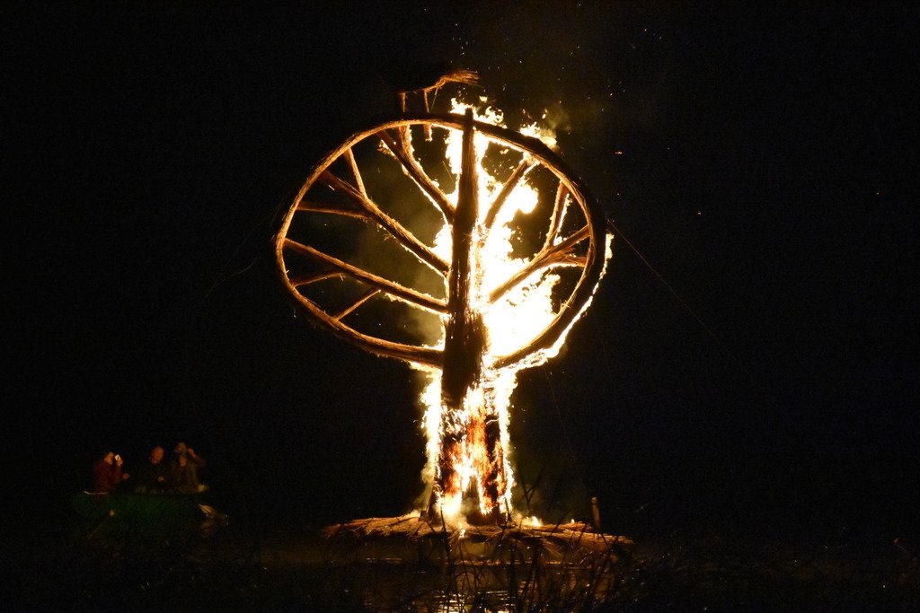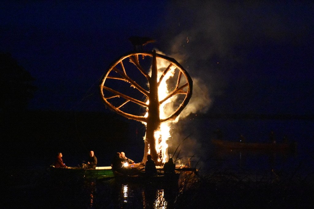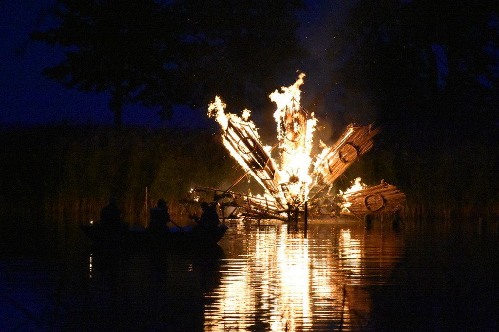 Dalinamės nuotraukomis iš vakar Juodkrantėje vykusios Rudens lygiadienio šventės, kurios metu buvo sudegintos visą vasarą Gintaro įlanką puošusios nendrinės ugnies skulptūros.