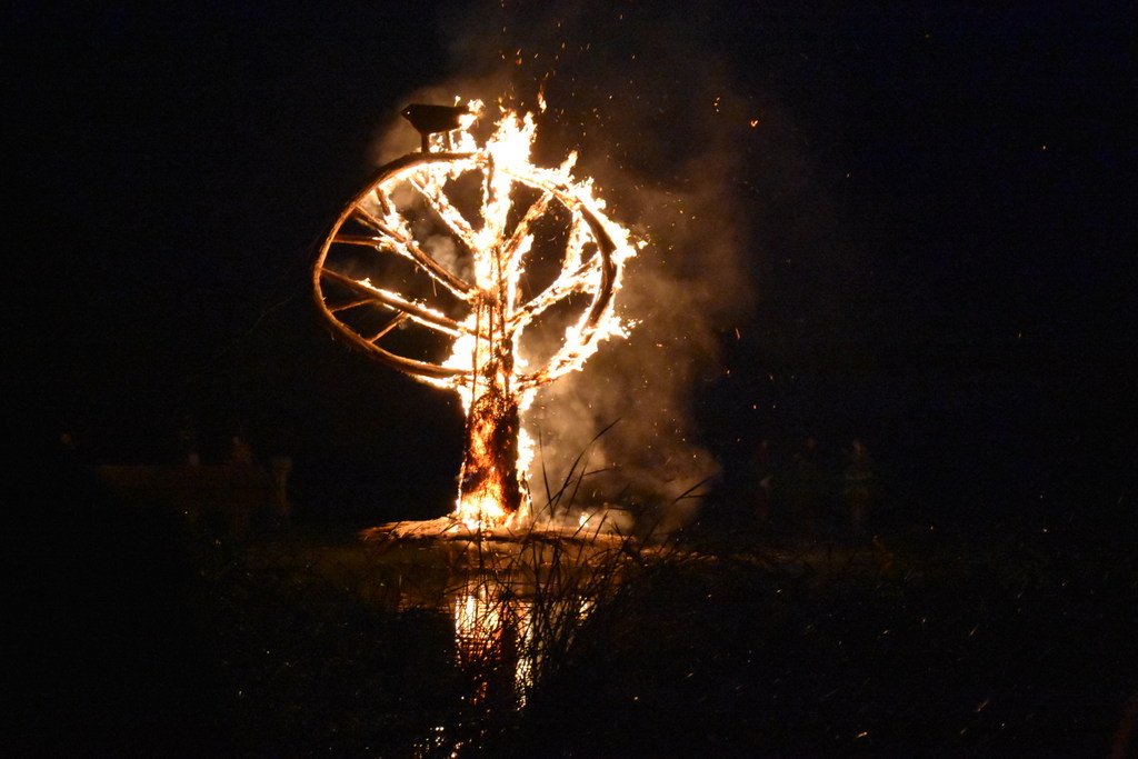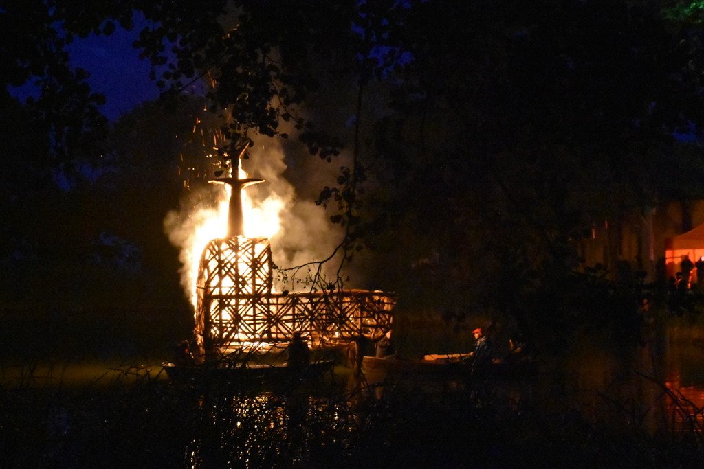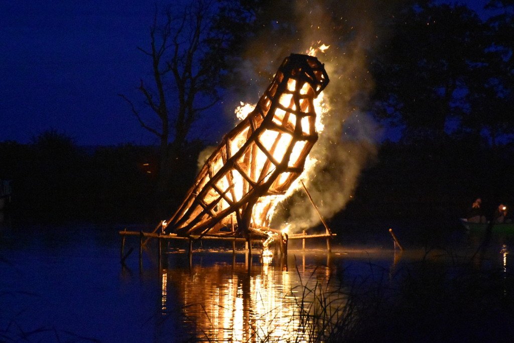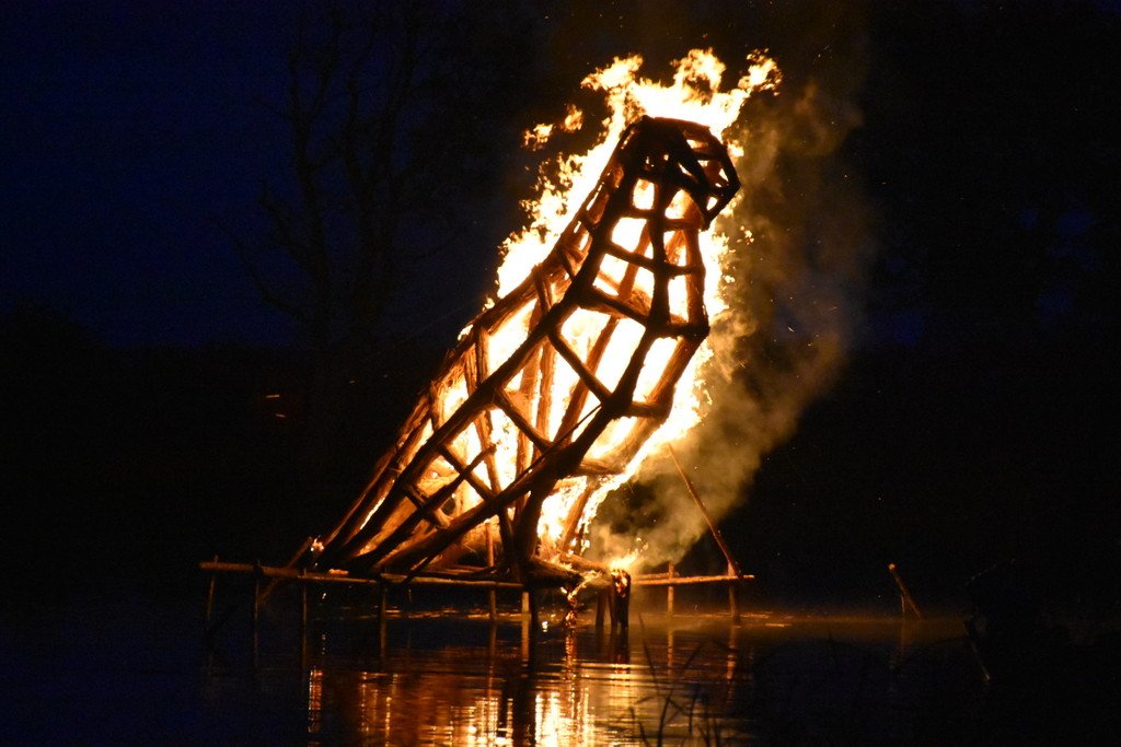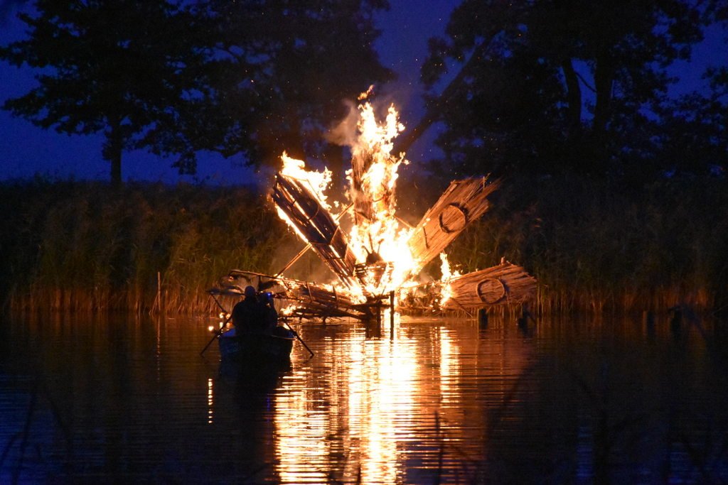 Dalinamės nuotraukomis iš vakar Juodkrantėje vykusios Rudens lygiadienio šventės, kurios metu buvo sudegintos visą vasarą Gintaro įlanką puošusios nendrinės ugnies skulptūros.
